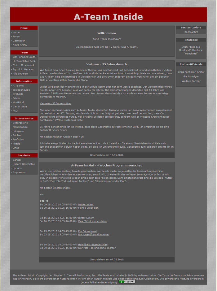 Damals noch im blauen Layout, avancierte die Seite schnell zur größten und meistbesuchten deutschen Fanseite, zum Thema A-Team. Die Marke der 40.000 Besucher wurde am 12. Mai 2003 durchbrochen.