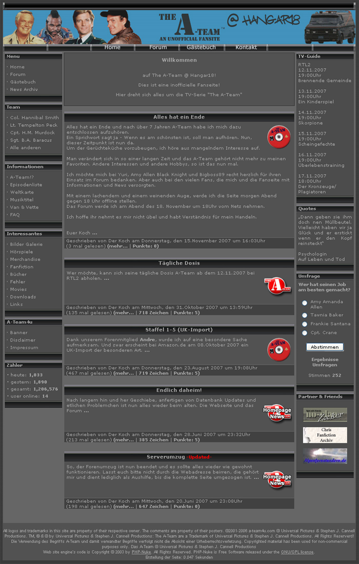 Damals noch im blauen Layout, avancierte die Seite schnell zur größten und meistbesuchten deutschen Fanseite, zum Thema A-Team. Die Marke der 40.000 Besucher wurde am 12. Mai 2003 durchbrochen.