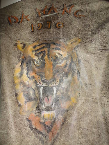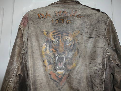 Der Aufdruck entstand durch die Garderobe der A-Team Produktion, womit alle Jacken Unikate darstellen. Wie man auf den Bilder sehen kann ist die Jacke nach 26 Jahren und 98 Episoden arg in Mitleidenschaft gezogen. Der Schriftzug “Da Nang 1970” und der Tigerkopf ist kaumnoch zu lesen. Darüber hinaus ist das Leder stark ausgegraut.