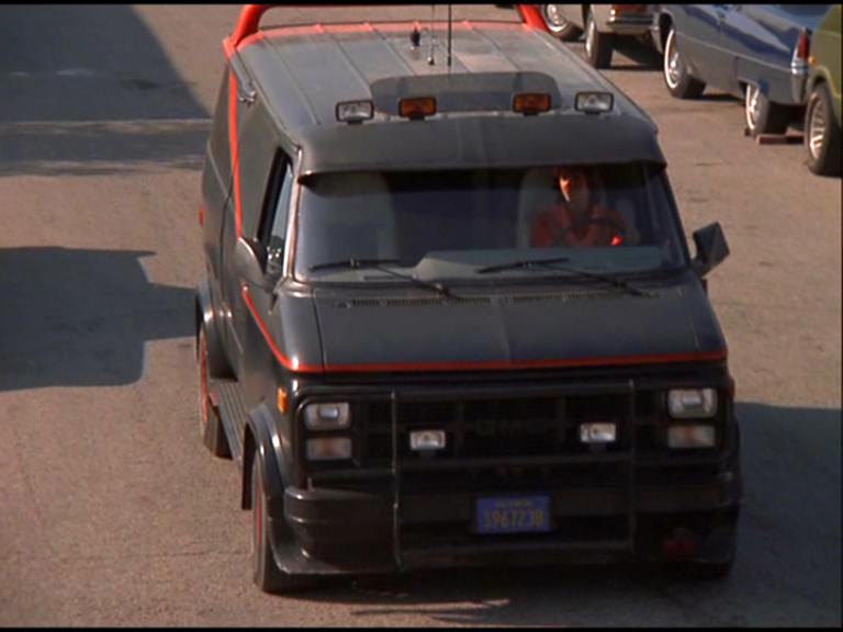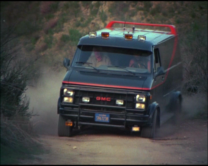 Der A-Team Van war ein GMC, Bj. 1983 aus der G-Serie (G-15 = 500Kg, G-25 = 750Kg und G-35 = 1000Kg Diese Angaben beziehen sich auf die Zuladung). Verwendet wurden zwei unterschiedliche Van-Typen, die sich optisch nur am Schiebedach unterscheiden lassen. Der GMC Van wurde durch die Universal Studios etwas verändert. Der Motor, eine 5,7 Liter V8 Maschine (350cui) und hatte ca. 230PS. Am Motor wurden hauptsächlich der Vergaser und die Abgasanlage etwas geändert. Am auffälligsten waren die auf jeder Seite heraus schauenden Endrohre der Abgasanlage. Es handelte sich dabei um jeweils vier quadratisch endene endrohre die eine rote Lackierung besaßen. Die Felgen (Turbine Style) waren schwarz / rot lackiert und mit 235/65 15 vorne und 275/65 15 hinten bereift.